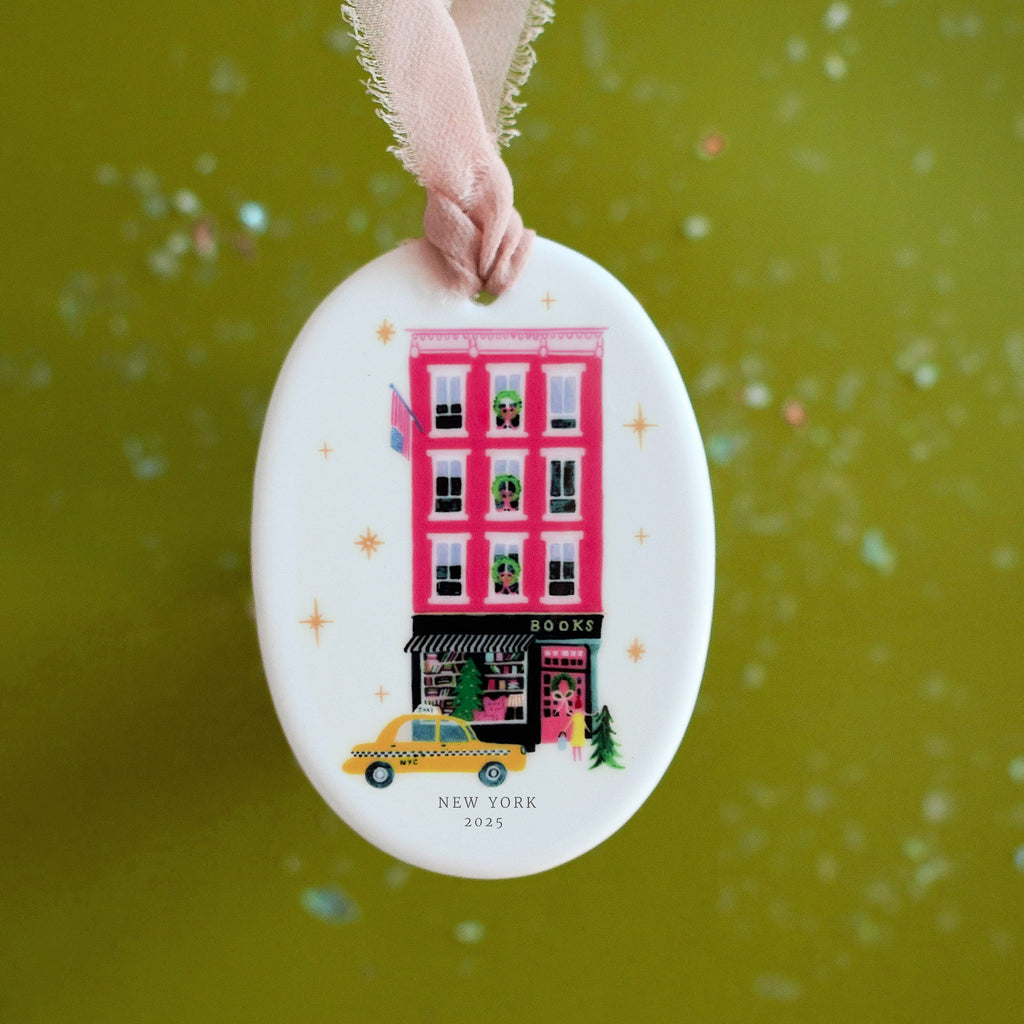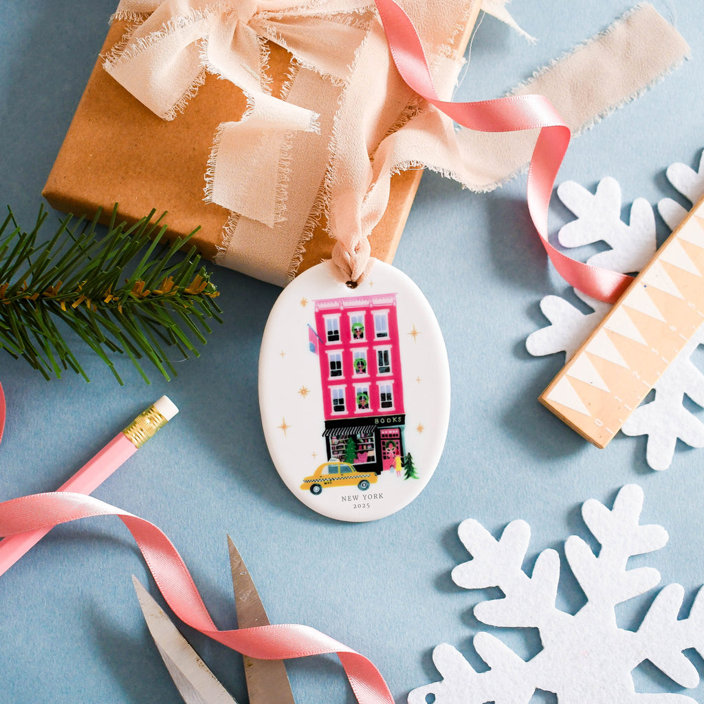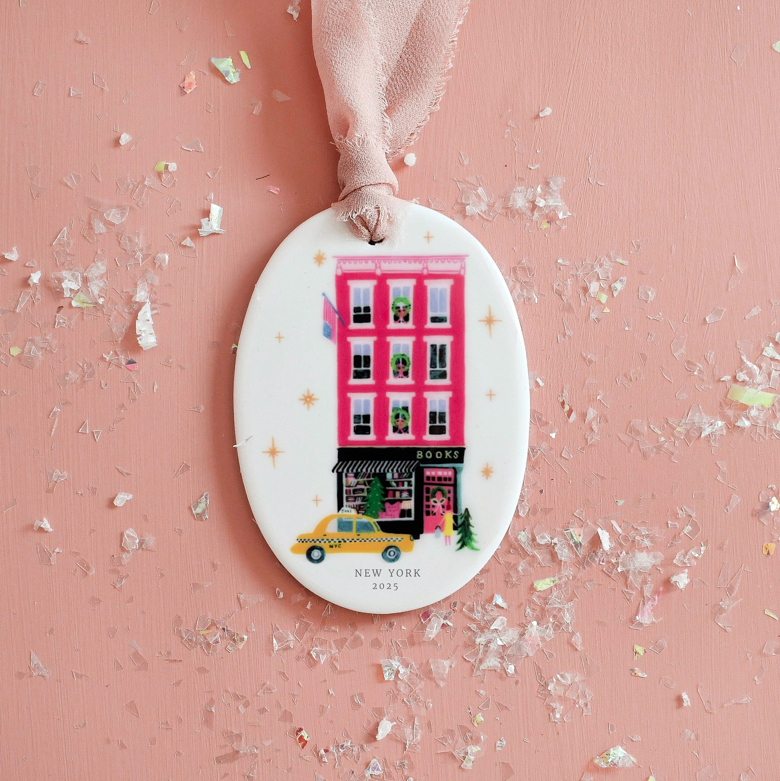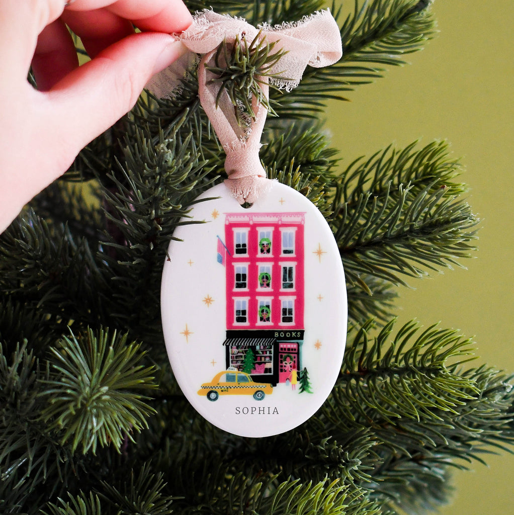 Celebrate the magic of the city that never sleeps with this personalized New York bookstore Christmas ornament – a charming Christmas bauble inspired by classic village houses and the cosy charm of an NYC bookshop in winter. Whether it’s a custom Christmas gift, a couple’s keepsake, or a nostalgic NYC travel ornament, this piece is perfect for book lovers, city dreamers, and holiday romantics. A timeless decoration to treasure year after year.