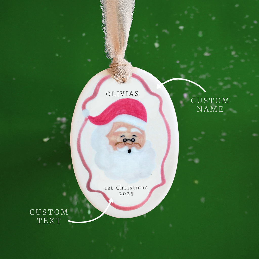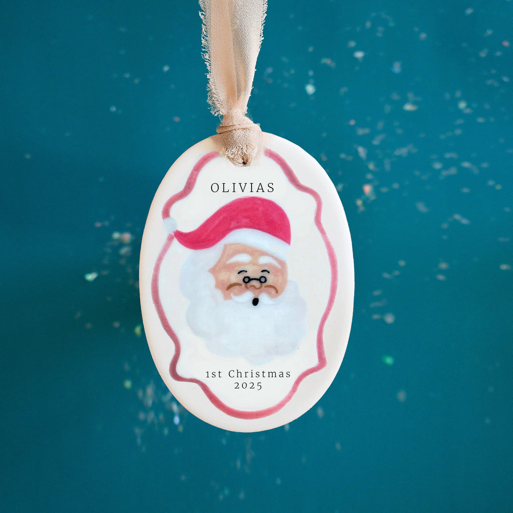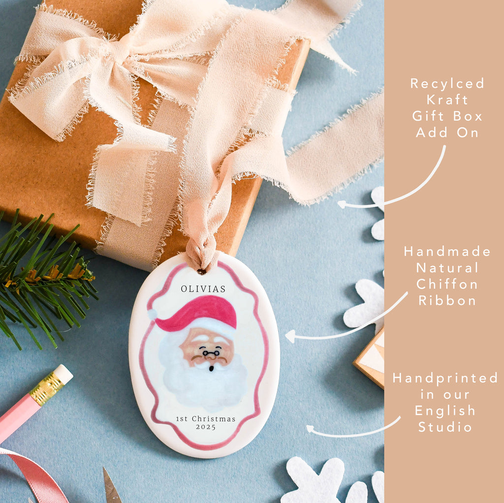 Celebrate a magical milestone with this personalized Santa baby’s first Christmas ornament – a charming keepsake gift designed to be treasured for years to come. A heartfelt gift for a new baby, perfect for parents who love timeless, traditional Christmas decor with a touch of storybook charm.