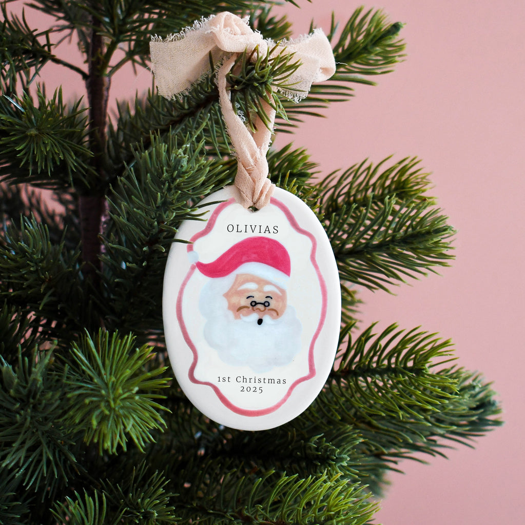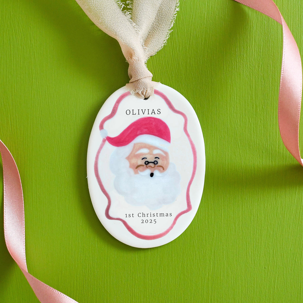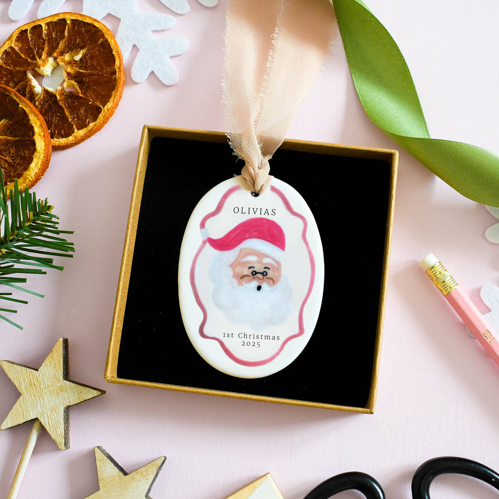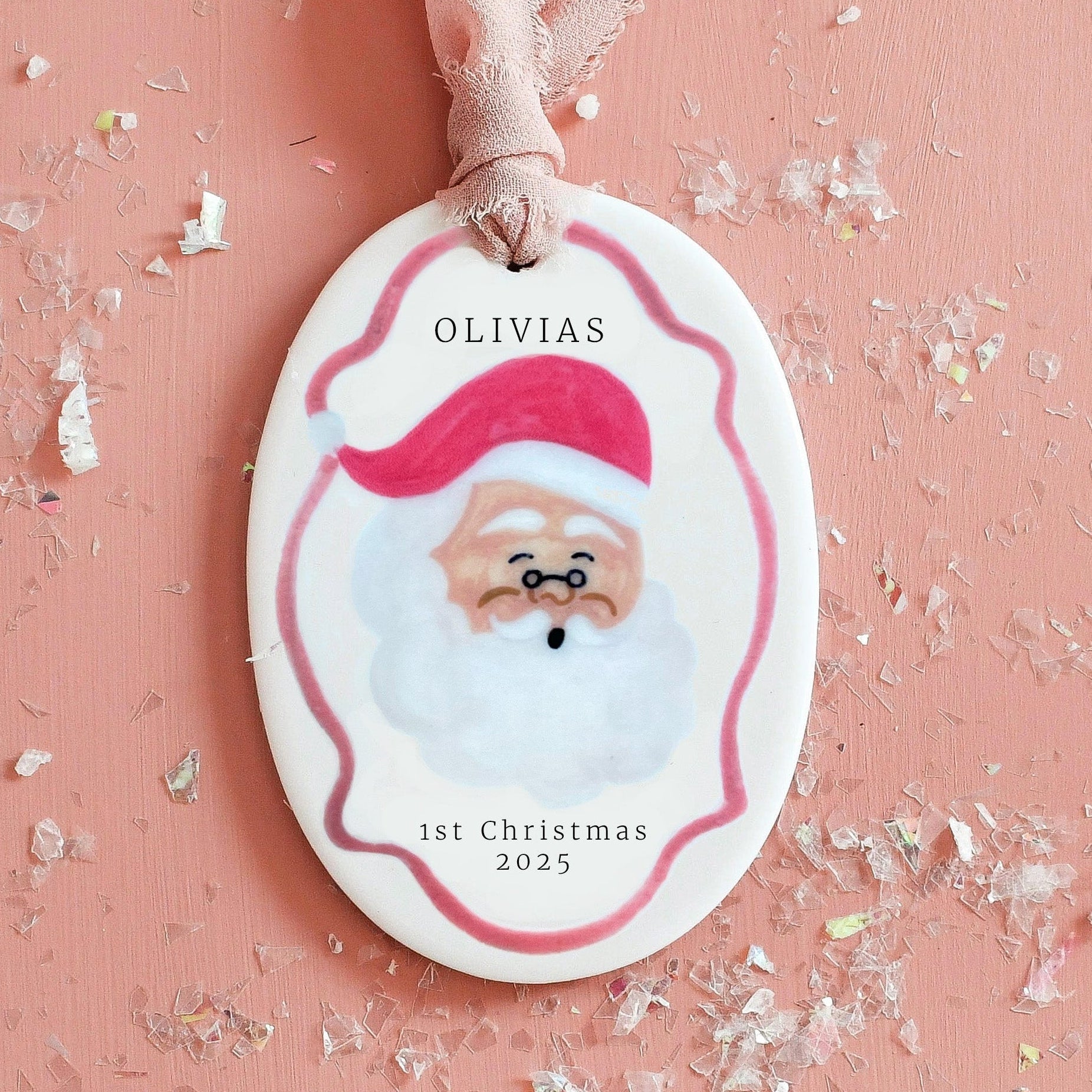 Celebrate a magical milestone with this personalized Santa baby’s first Christmas ornament – a charming keepsake gift designed to be treasured for years to come. A heartfelt gift for a new baby, perfect for parents who love timeless, traditional Christmas decor with a touch of storybook charm.