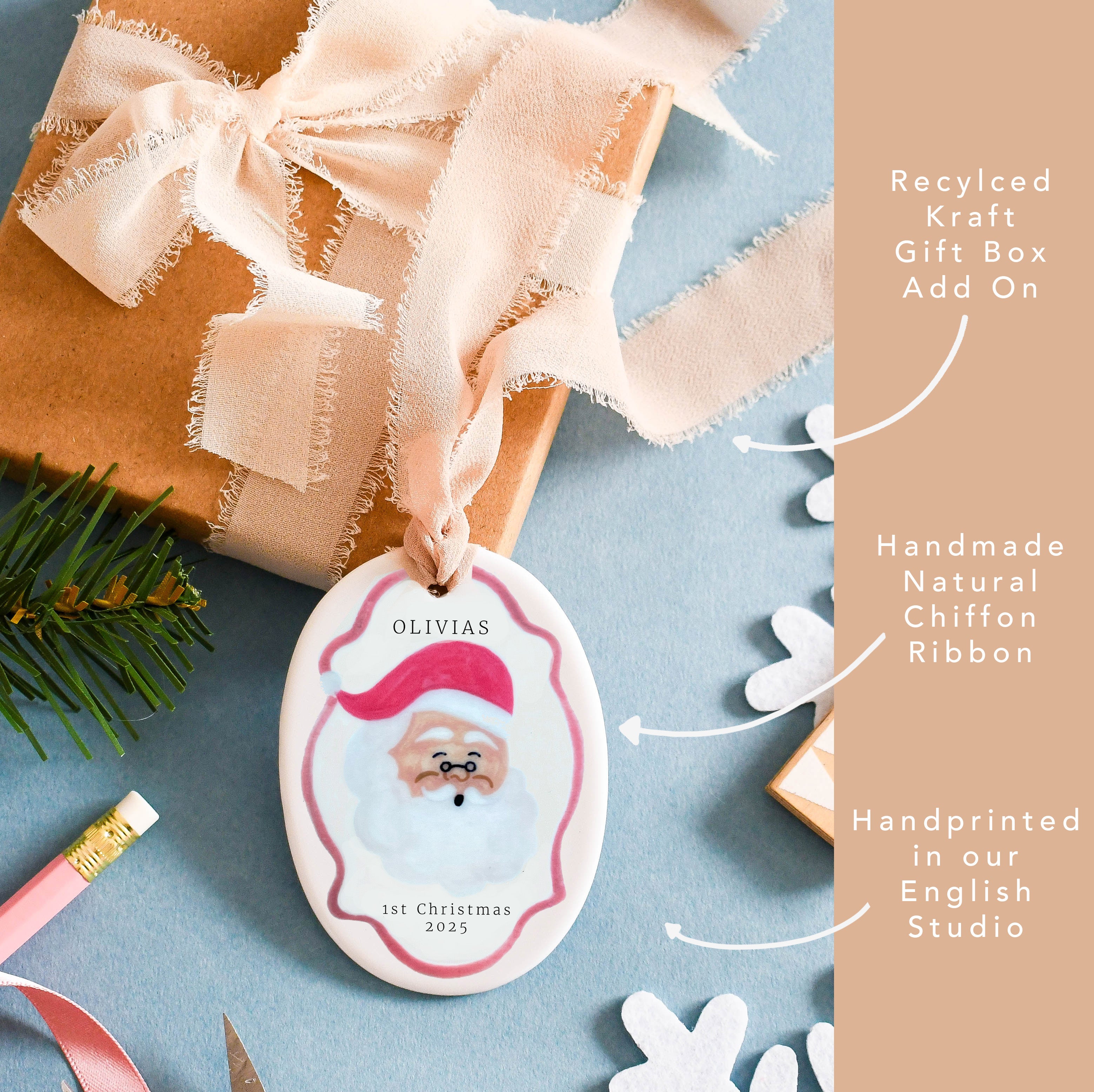 Add an extra touch of Christmas magic by selecting our luxury gift box add on. Your ornament will be placed in a kraft gift box, wrapped in a Natural Chiffon Ribbon and will be finished with an illustrated gift tag with a message of your choice.
