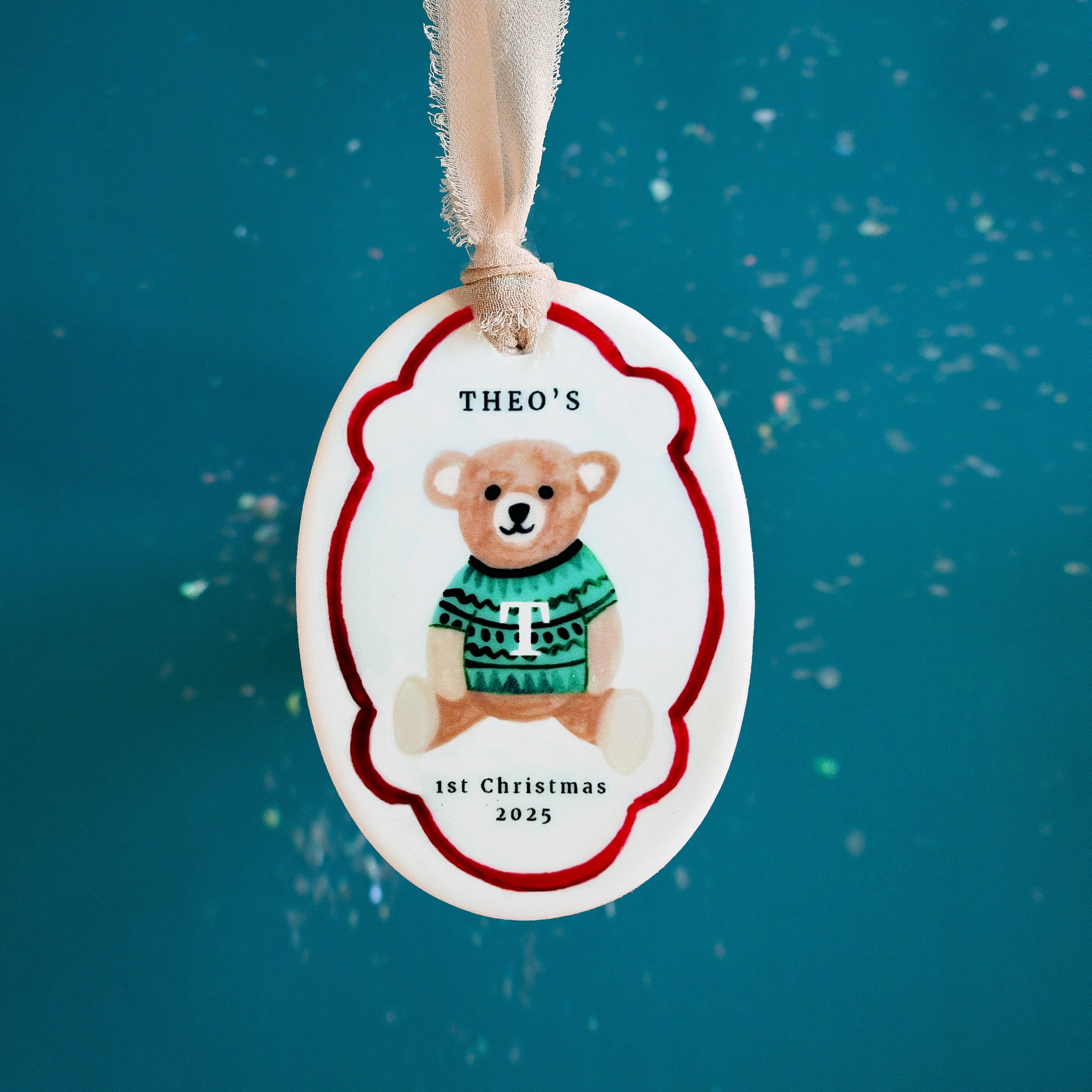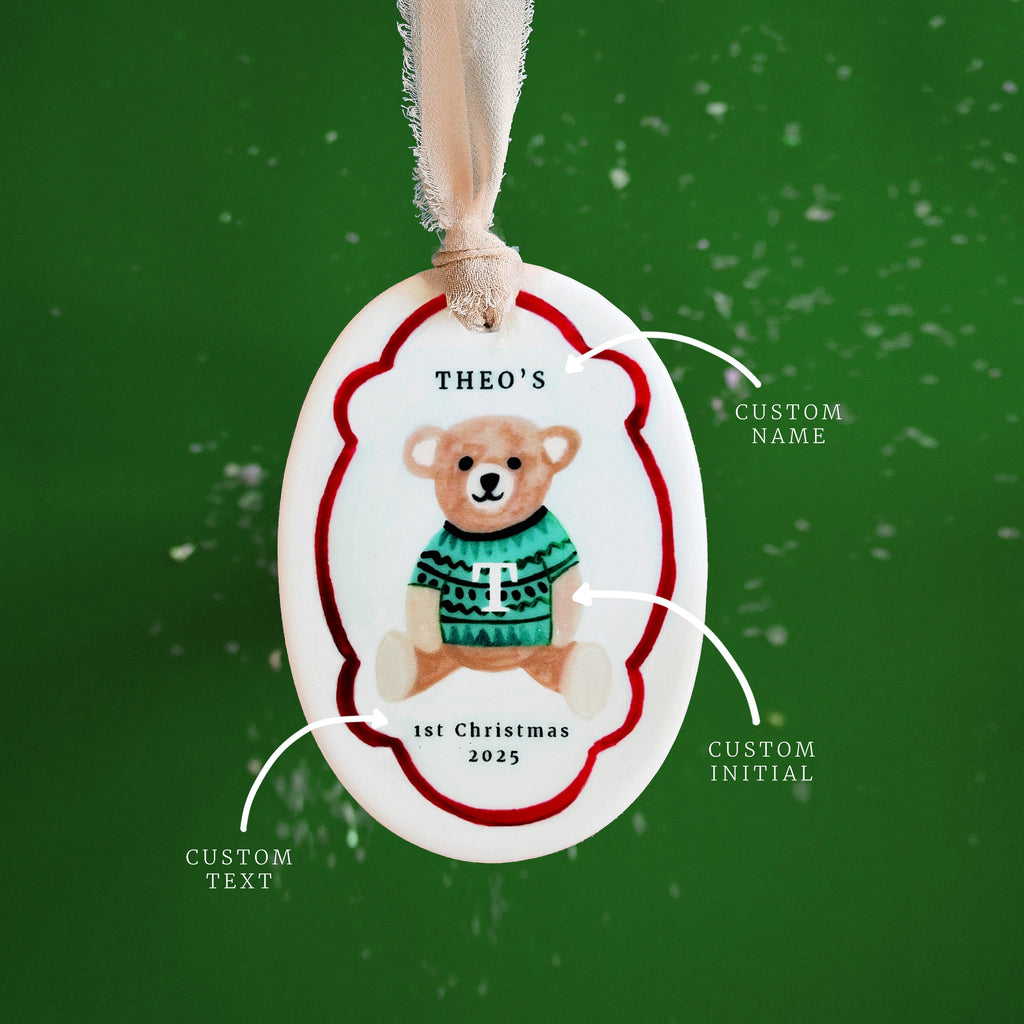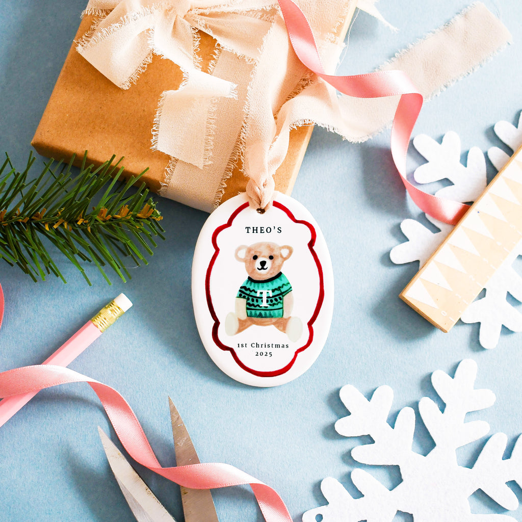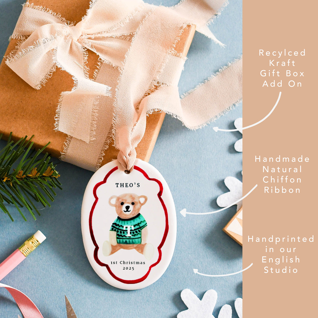 Celebrate a magical milestone with this personalized Teddy Bear baby’s first Christmas ornament – a charming keepsake gift designed to be treasured for years to come. A heartfelt gift for a new baby, perfect for parents who love timeless, traditional Christmas decor with a touch of storybook charm.