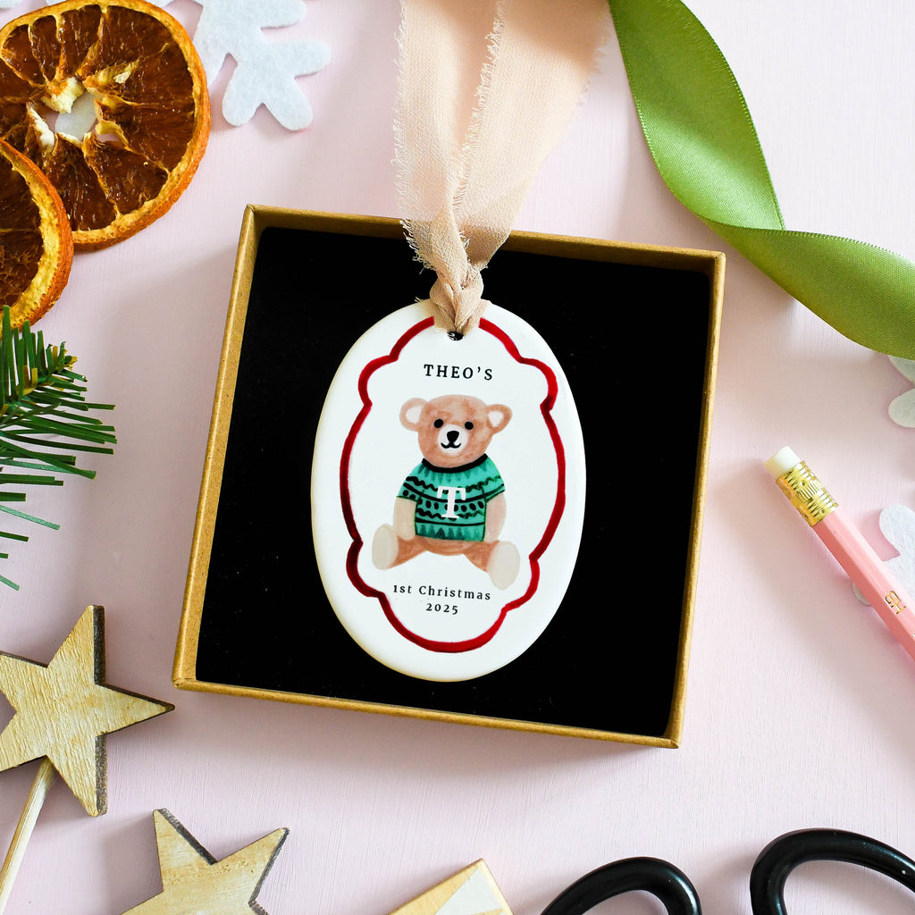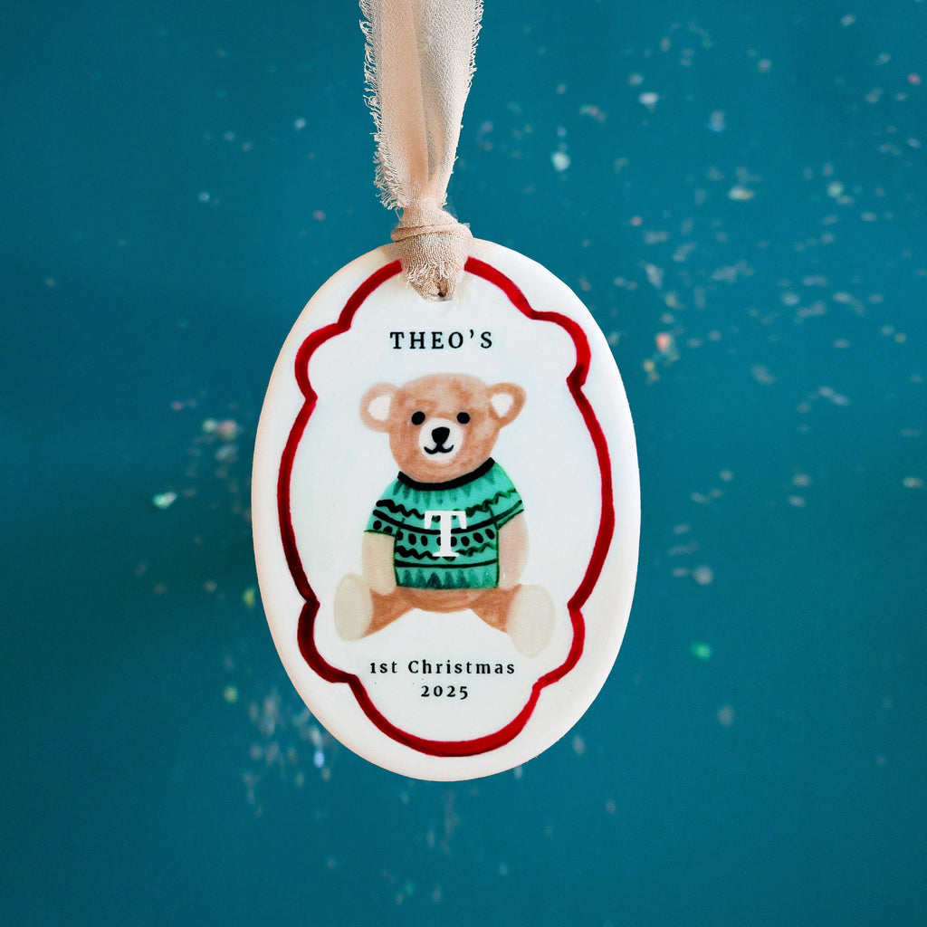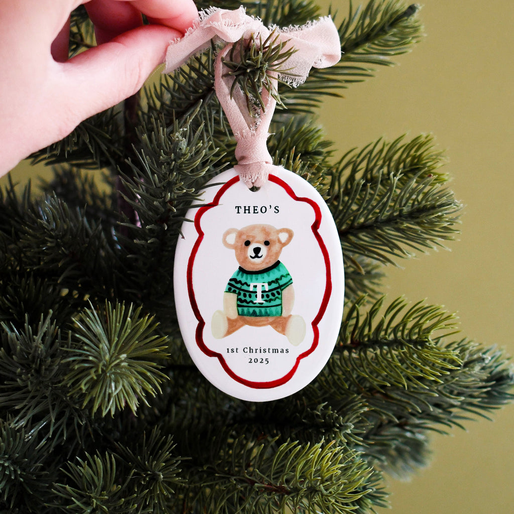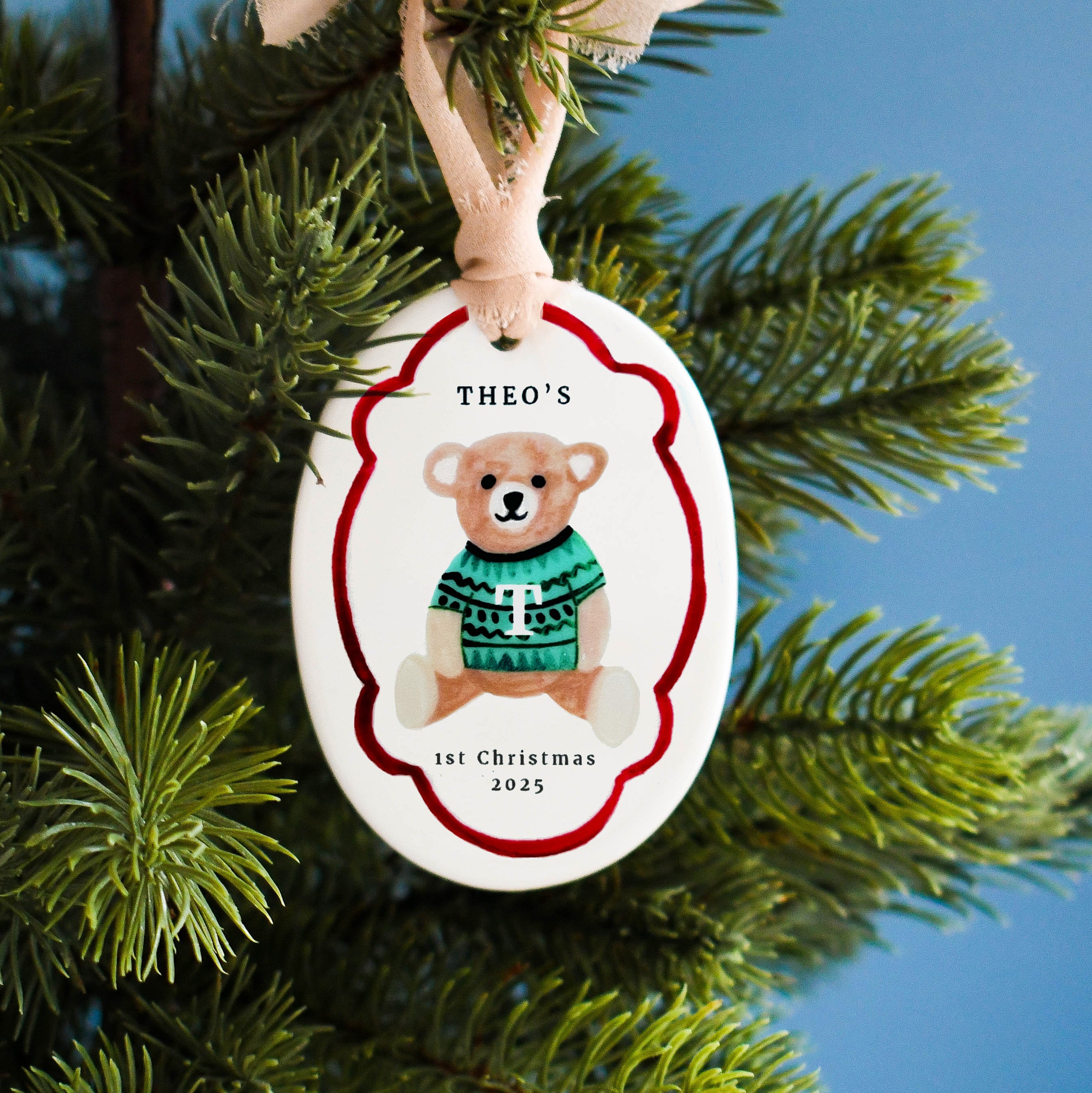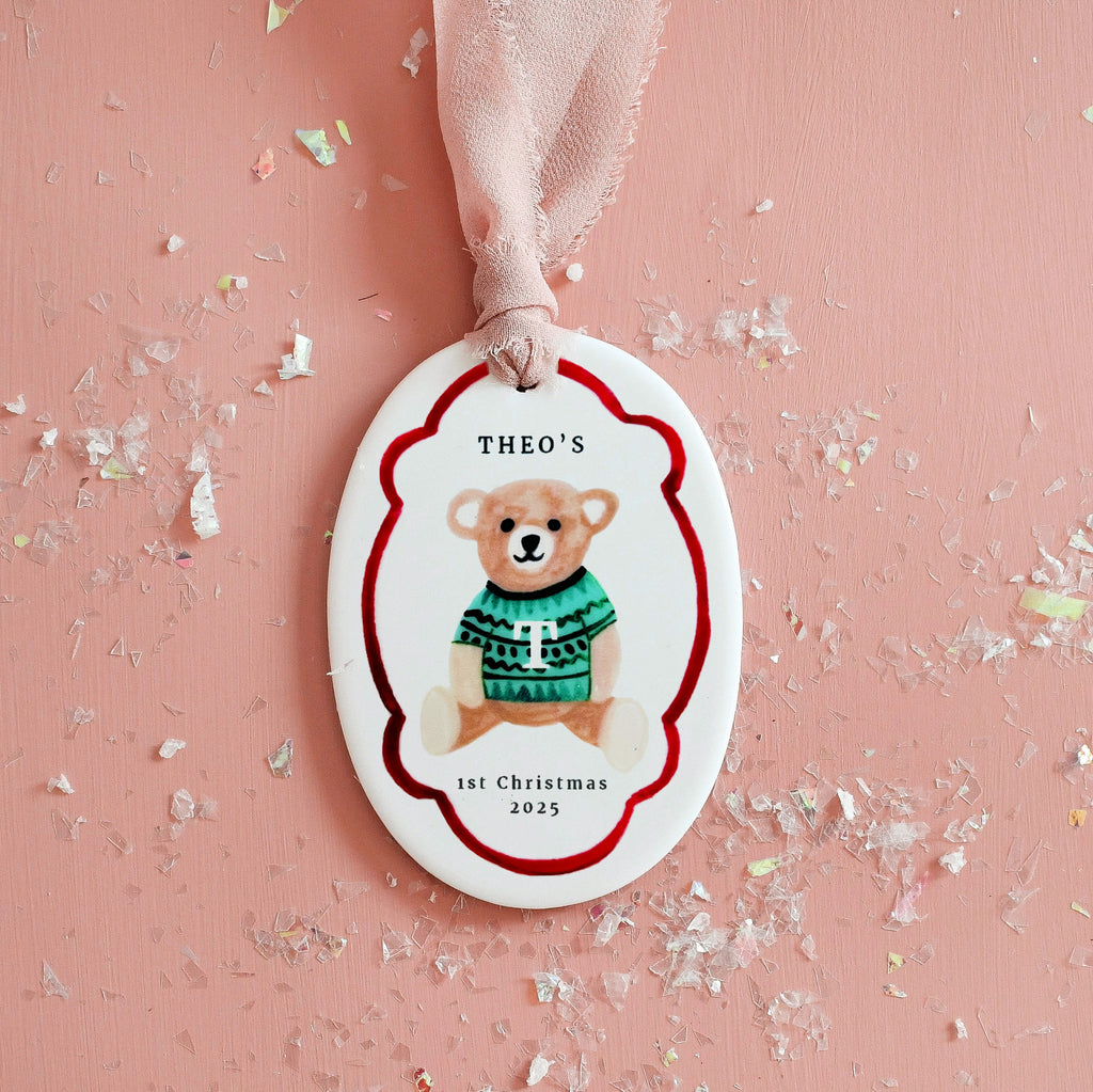 Celebrate a magical milestone with this personalized Teddy Bear baby’s first Christmas ornament – a charming keepsake gift designed to be treasured for years to come. A heartfelt gift for a new baby, perfect for parents who love timeless, traditional Christmas decor with a touch of storybook charm.