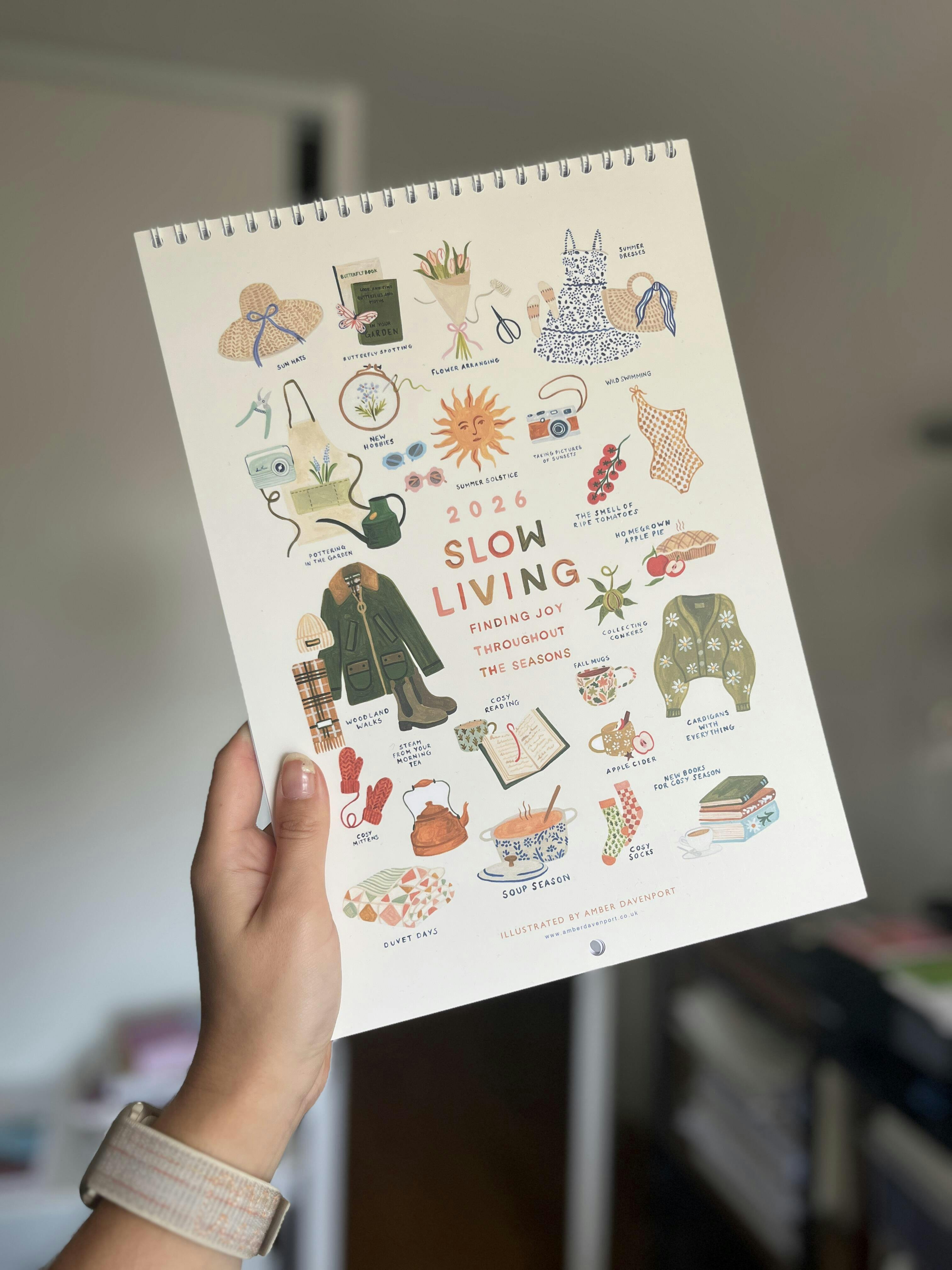 From the first blossoms of spring to the cosy comforts of autumn and winter, each page captures the simple joys that make every season special. Featuring original acrylic paintings by Amber Davenport, this calendar is more than just a date keeper, it’s a collection of art.