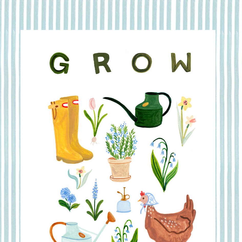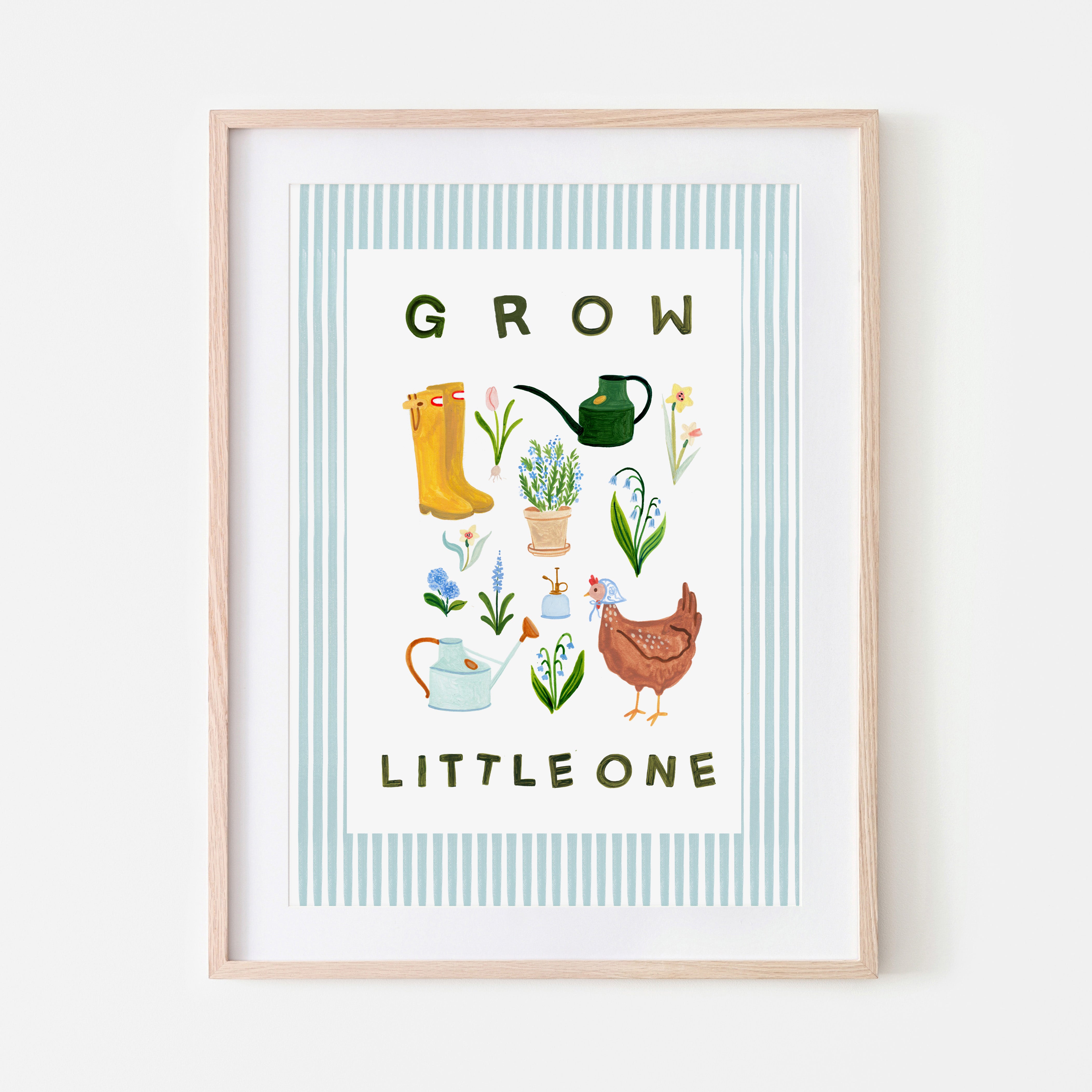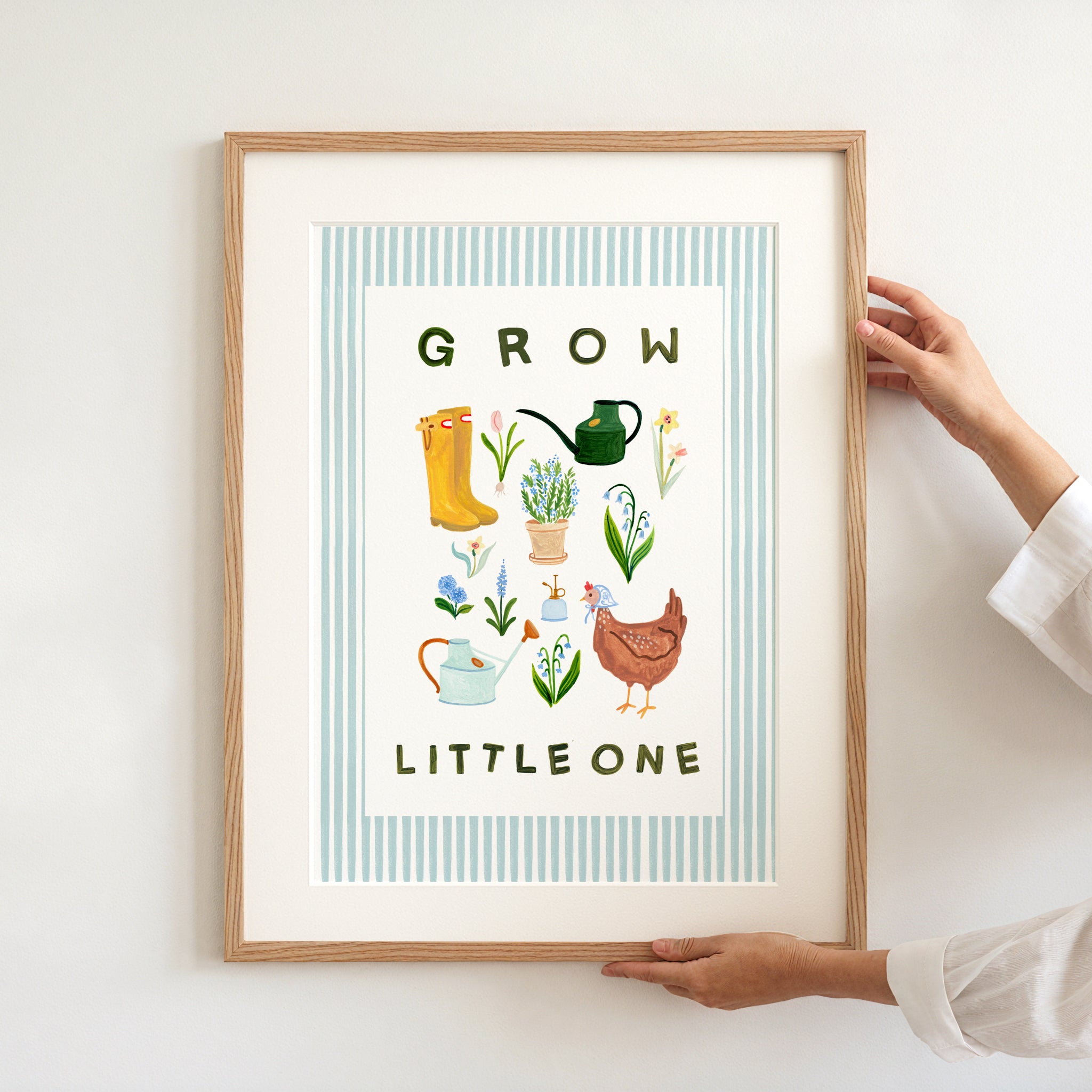 “Grow Little One” kids wall art print featuring a soft, whimsical design with colourful details- perfect for nursery decor, toddler bedrooms, and cottagecore-inspired playroom styling.